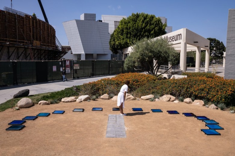 I went through my own blue period as an artist in 2016 and 2017, during which I both suffered from an uneasy case of politically motivated agoraphobia and collected over 190 images of different shades of blue, captured by photographing uninterrupted squares of sky on cloudless days. This project, which I titled #sky #nofilter, wound up progressing far beyond the photographic. It eventually appeared in such varied forms as a silent work of video art that shifts through my blues for a little over 34 minutes; a performance lecture about the nature of enduring during uncertain political times that was later published as a chapbook; a series of studies exploring different ways to translate digital blues into physical materials; and the project’s final version: a public sculpture in the form of an analemmatic sundial, commissioned by and permanently installed at the California African American Museum in Los Angeles. The sundial uses the human body as the gnomon, or the shadow-casting object by which time is told, requiring two participants for a complete reading: one to stand and mark the shadow, and the other to read the text of the panel on which the shadow hovers closest. The sundial as a marker of time was my attempt to harness color and emotion, two fleeting realities.