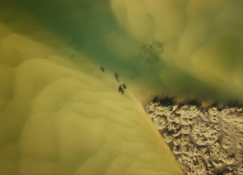 At the 2024 Berlinale press conference for Pepe, De Los Santos Arias was asked how he conceptualized his film. He answered that the current situation regarding the Colombian government and hippos doesn’t interest him: “What I was interested in was all this symbolism.” The director is in a precarious position when the current sociopolitical reality of Colombia’s hippos isn’t explicitly acknowledged, but this symbolism is made quite apparent when looking at the film’s formal elements.