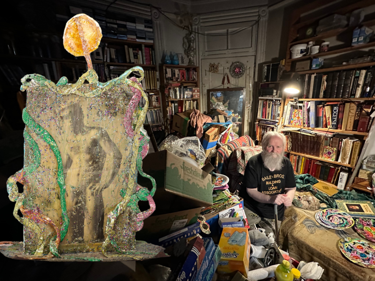 From his fourth-floor Hell’s Kitchen walk-up, the artist talks Catholic icons, tin foil, and memories of fires raging outside the treasured safe space for the queer community in 1960s New York City.