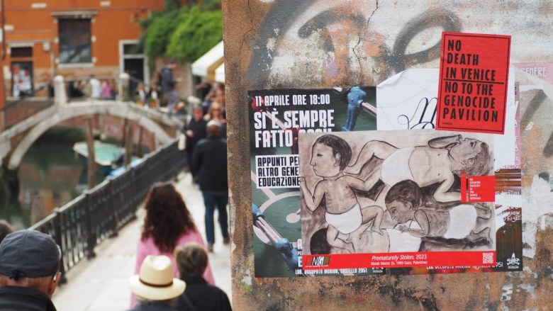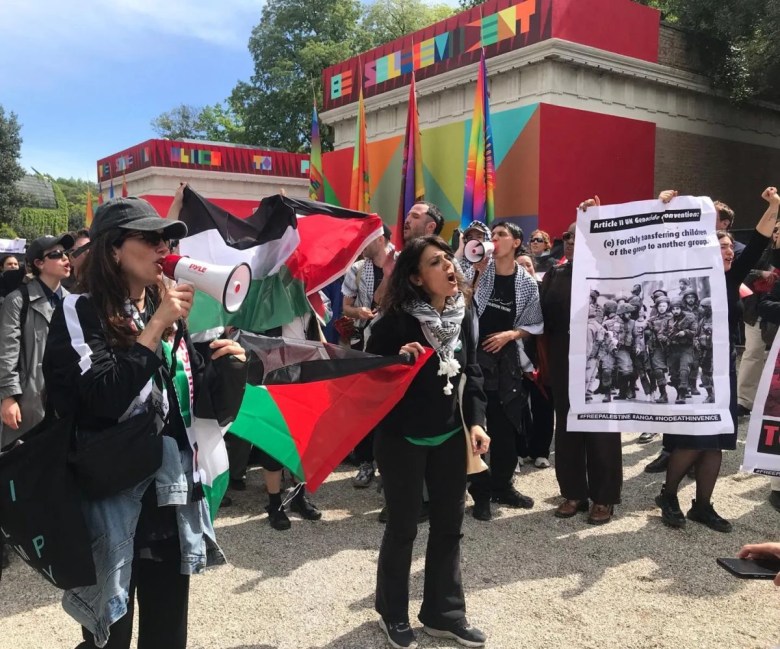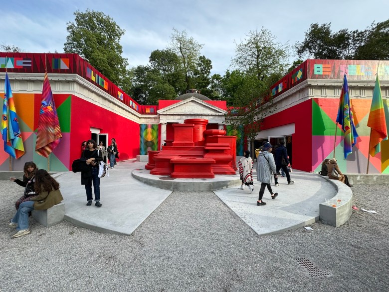But that’s not all the exhibition has in store. The politics of the art world are also on full display, whether in the form of protests or the curators’ decisions about how their countries — with all their past and present controversies — will be represented. This year’s included Russia offering its pavilion up to Indigenous artists from Bolivia, Brazil renaming its pavilion “Hãhãwpuá” after the Indigenous Patxohã term for the land, Poland welcoming an art collective from Ukraine, the United States featuring Jeffrey Gibson as the first Native American artist to have a solo exhibition at the pavilion, and Israel canceling its exhibition … which perhaps wasn’t really canceled after all.