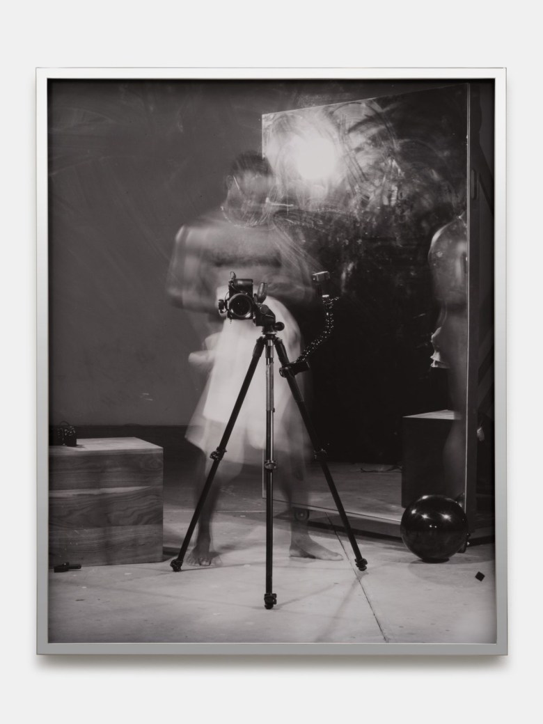Photography, in one conception, is the art of constructing fictions. Working with, alongside, and against conventions of portraiture photography, Paul Mpagi Sepuya manipulates the gaps between image and object. He creates, negotiates, and frustrates desire and intimacy — viewers glimpse fantasy, but never quite reach a state of full enjoyment of it. In TRANCE, his second solo show at Bortolami, the artist elevates this longstanding interest in toying with the medium of photography into a maze of repetition, seriality, and cross-referencing.