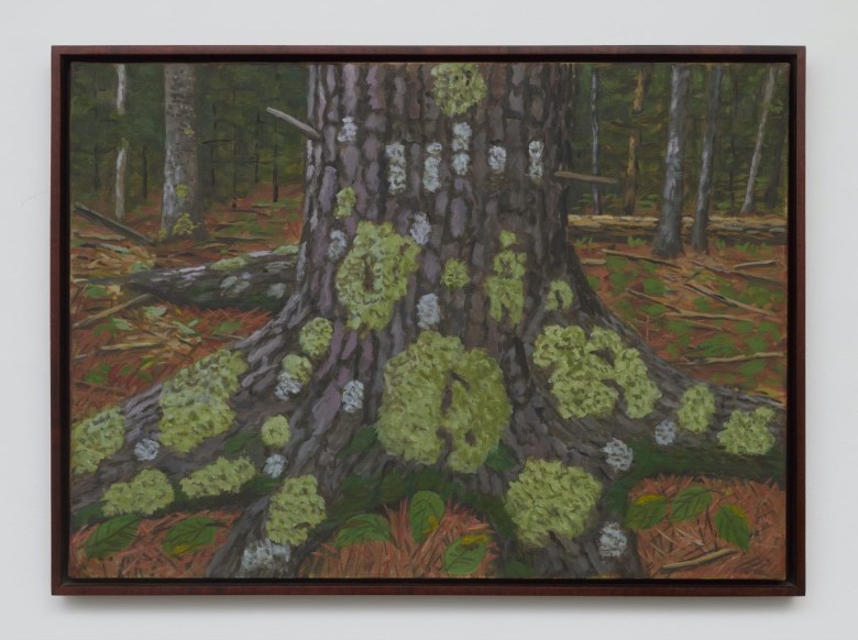 The exhibition is comprised of 16 paintings — mostly Maine landscapes (1972–97) and New York cityscapes (1970–87), as well as a 1947 self-portrait and a 1968 still-life — accompanied by a group of paintings done on large dried, perennial mushrooms, arranged on a table. It’s works like these that have thrown people off when encountering Burckhardt’s art. He was a serious artist who never took himself too seriously. He painted manhole covers and lichen clinging to trees, things everybody saw but never stopped to look at closely, much less paint.