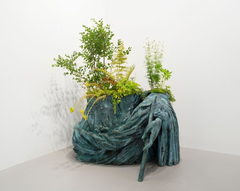 Bogotá-born artist Iván Argote challenges colonial legacies through shrewd, striking interventions with monuments that champion these histories. Impermanent centers photographic and sculptural works made between 2012 and 2024, including his 2013 photo of a statue of King Charles III of Spain in downtown LA wearing an Indigenous poncho, a recognition of the communities who already lived in the area when the city was founded during his reign in 1781. Argote’s Etcetera series (2012–18), depicts a monument to Francisco de Orellana, the so-called “discoverer” of the Amazon, that Argote covered in mirrors to functionally replace him with the surrounding landscape. The exhibition also features his Wildflowers, Augustus series (2024), which repurposes sections of a replica bronze statue of the Roman Emperor Augustus as planters for native foliage.