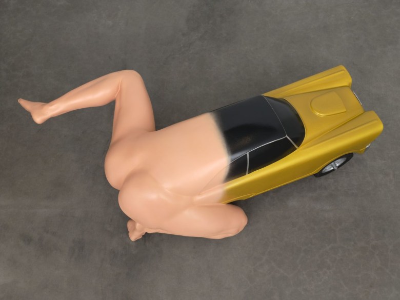 Transformation was a constant theme in Pippa Garner’s art and life, from her cheeky hybrid automobiles and furniture to her own gender evolution, which she began in the 1980s. Misc. Pippa is a two-venue survey of her boundary-breaking career, held at Stars in Los Angeles and Matthew Brown in New York. The LA iteration includes her first intentional artwork “Kar-mann” (1969), a meticulously crafted half-man, half-car sculpture complete with a hanging scrotum like a set of proto-truck nuts, alongside drawings, photographs, and other objects showcasing Garner’s subversive wit, whimsy, and material gusto. Garner sadly passed away on December 30 at the age of 82, making this bi-coastal exhibition a fitting tribute to her life and legacy.