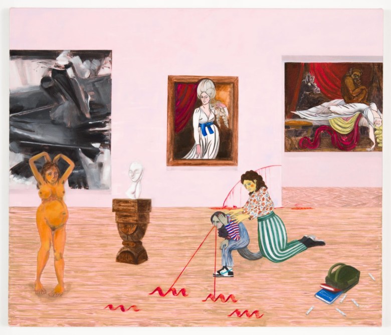 In Elizabeth Tremante’s irreverent canvases, art historical depictions of femininity are confronted by real-world women, yielding comically violent results. Within serene museum galleries hung with her versions of Western masterworks, Tremante depicts women, girls, and families who bleed, vomit, cry, and otherwise defile these hallowed cultural institutions. Named for the horror film trope of the lone female survivor, Final Girls portrays a trip to the museum as a hysterically ferocious struggle between representation and reality.