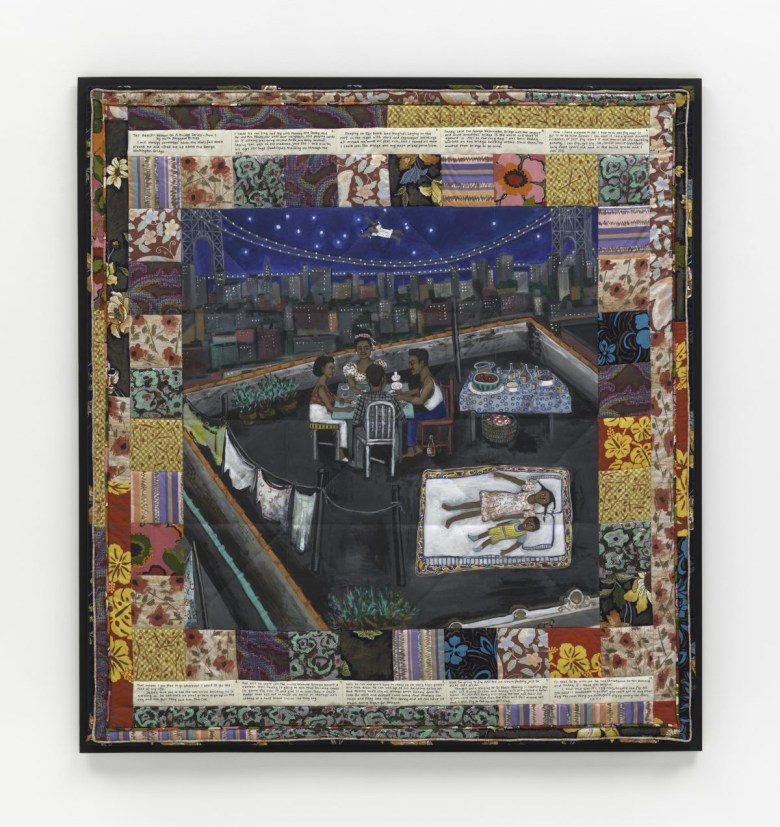In Faith Ringgold’s “Woman on a Bridge #1 of 5: Tar Beach” (1988), a family gathers on a Harlem roof, the George Washington Bridge spanning the horizon line and Ringgold herself aloft in the starlit sky. The Guggenheim will pair Ringgold’s iconic quilt with related works, including pieces by those who inspired her, like Picasso, and those she in turn inspired, like Sanford Biggers.