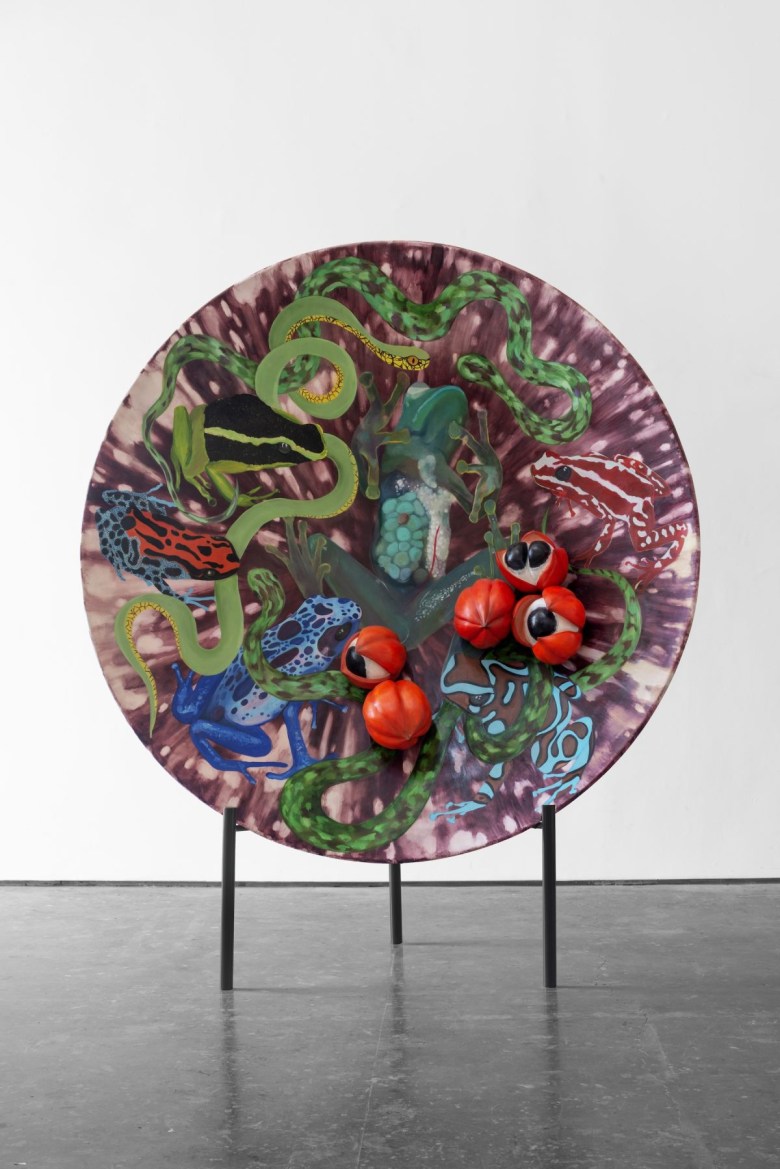 ASMA’s immersive exhibition at SculptureCenter, composed of aluminum sculptures, canvas compositions, and eerie characters constructed from silicon, resin, bronze, steel, and glass, explores concepts of disintegration, contamination, and desire. It marks the Mexico City-based artist duo’s inaugural United States institutional exhibition.