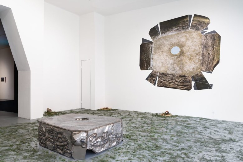 Artists Beatriz Cortez and rafa esparza imagine ancient artifacts flying through time and space in this exhibition. esparza, for instance, shows a monument that recalls an Olmec head at the edge of a wormhole, while Cortez explores the ways that people and objects move across land through steel sculptures that suggest looted objects.
