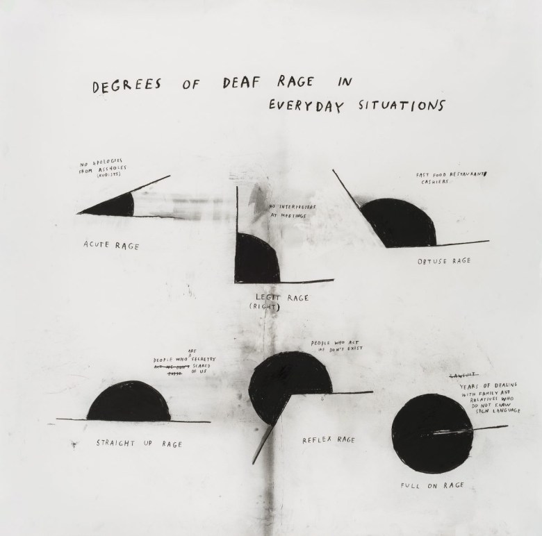 Named after an ambiguous translation of part of an epitaph in Japan’s Hiroshima Peace Memorial Park, this group show contends with the United States’s development of the nuclear bomb. Beginning with uranium mining in the Congo and continuing on to the weapon of mass destruction’s nuclear waste footprint, the exhibition calls upon painting, drawing, animation, and more, to construct a linear narrative of the Manhattan Project.
