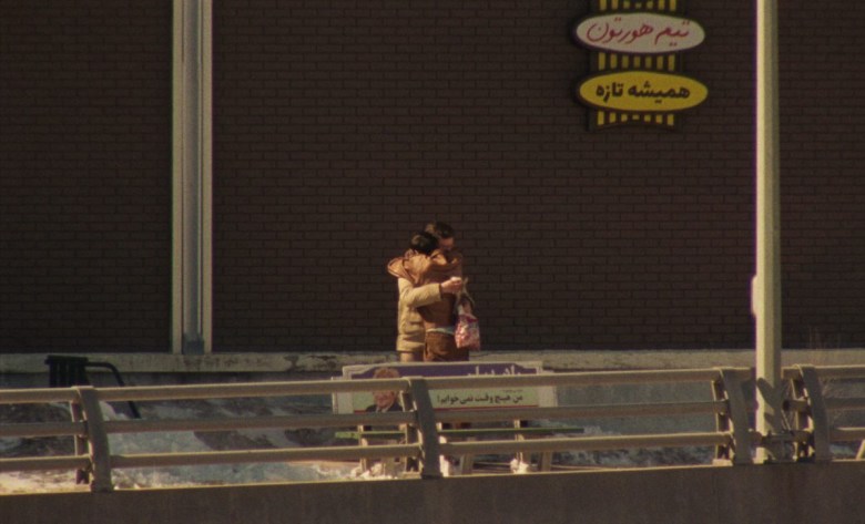 In Universal Language, director Matthew Rankin transforms the environs of his native Winnipeg into a tight-knit Iranian hamlet. Advertisements and street signs appear in Persian script, and Farsi is the primary language spoken (although the government of Québec, nearby in the topsy-turvy geography of the film, still sternly insists on French). Townsfolk hawk wares from makeshift stalls set against Brutalist municipal blocks. Flocks of wild turkeys wander snowy streets. In one truly resplendent moment, glazed donuts mingle with brass samovars and beaded tablecloths at a candlelit Tim Horton’s (a doughnut chain started in Canada), tended to by a politely arch proprietress who seems straight out of Iranian director Abbas Kiarostami’s beloved 1999 film The Wind Will Carry Us.