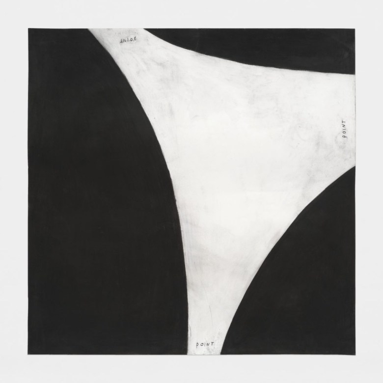 Indeed, Kim’s art not only foregrounds the ostensibly obvious but often under-considered fact that communication draws upon a vast universe of signs and formats, from facial expressions to graphs to etymologies — it also activates that knowledge in viewers. I found myself copying the motions of “Pointing” (2022), in which she translates the minute motion of fingers against the palm into black masses of charcoal that seem to bounce off the edges of the paper. These intimate drawings are blown up into massive wall murals, suggesting to me the kinetic energy of people in a room. As I turned, I saw the whirling eddies of exchanges between couples, friend groups, and strangers as they moved around each other on a crowded night.